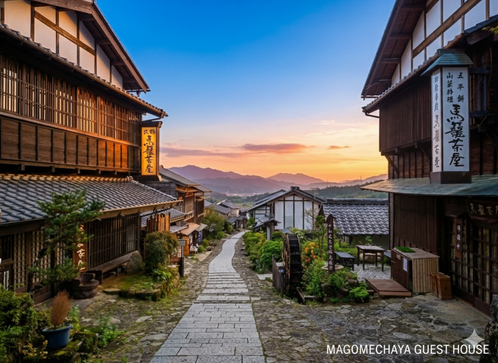 - Magomejuku is a small post town of Nakasendo road and one of famous town in edo period. it is having a 600 meters from down to bottom.